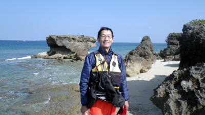 ![]() ![]() 昨年、台風の影響で慶良間ツアーが中止になり今回1泊2日で漕ぎに来てくれた〇藤さん |