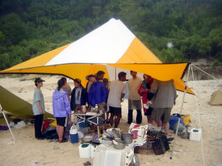 | 今回のツアーは、松さんのおかげで(笑)初日以外はほとんど雨、雨、雨、雨、これでもかと雨!タープの下で工作したりと、それなりに楽しんだツアーでした。 撃沈が続出するなか「沈脱友の会」を結成!ただ単に”沈”してしまったら勝手に入会させられるのである。 会長:まっちゃん、副会長:おっちゃん(まっちゃん&おっとちゃんコンビ) 会員;こば、たむたむ、おしょう、よね、波乗り直道、どさんこスミ、かずさかい、 準会員:たまに止まってしまう辻 の構成!これから会員を募集していきます(笑)。 ツアー終了後、いつもの打ち上げ!これまでにない盛り上がり!58団、アドファミ総勢14人の大宴会!平野さん山寺さん僕らだけ楽しんでごめんね(ウヒヒ〜)。曲のたんびに、カチャーシーと乾杯!周りのお客さんも吸収し「かんぱーーーーーい!」の連続! 踊れるガイド酒井のひきつけ音頭、まみさんの太鼓の乱舞、やまうら&つじのカラオケ占領大作戦!とても恥ずかしくてかけない内容がもり沢山!民謡酒場なのに、なぜか「オーソレミヨー」をアカペラで歌うおじさんいるし、「東京に来たら俺を訪ねろ」と酔いながら何度も叫んでいた!みんな関東から来たということも知らずに。そんなかんだでみんなツアーより疲れて果てていました(笑)。 今回は海でいろんな経験ができ勉強になりました。あのすごいうねりの中来てくれた酒井さん夫婦、平野さん、本当にありがとうございました。これからもっと精進していきます。 sakai |
