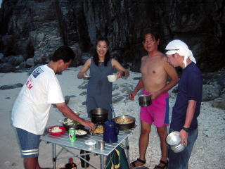 | ずーっと停滞していた台風16号が無事に南下(?)し事なくおえました。初日はうねりが残り青年の家のバンガロー泊。雨が1年の半分の降水量が一気にこの1週間で降ったもんだから、渡嘉敷も被害を受けました.道路が崩れ阿波連の人たちは本当に不便な生活だと思います。復旧工事も3年後に完成だそうです。 水温も下がり、渡嘉久ビーチは「つめて〜」の連続!沖の方に行くとだんだん水温も上がって快適でした。 ムカラクでクワバラさんが飛び込み岩から、頭からダイブ!!!その勇気に感銘しました。私は怖くて足からしかいけません(情けない)。毎食事時に「石乗せゲーム」が始まり、みんなと団結して”岩”を倒し(笑)、岩の上に”石”を乗せ、久しぶりに達成感(笑)を分かち合えました。皆さん感想文よろしくお願いしますよ。 sakai |