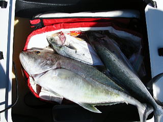 | 約5キロのガーラ(シマアジ)とツムブリです。 久保さん写真送っていただき ありがとうございました。 銀杏もおいしくいただいちゃいました。 |