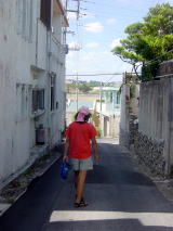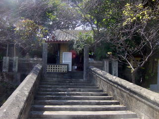 | 牛の散歩? | 人の散歩(^:^) | 奥武島の中央にある神社 |