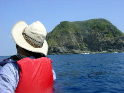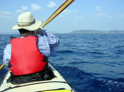 前島がようやく見えてきました。 さらに、向こうの薄っすら見えるのが 目指すは渡嘉敷島! |