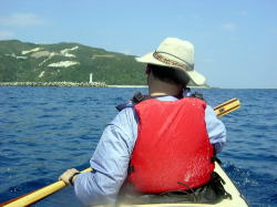 | ワ〜イ♪ワ〜イ♪やりました! 渡嘉敷港の入り口が見えてきました。 あと少し、あと少し、あと・・・す・こ・・し〜 |