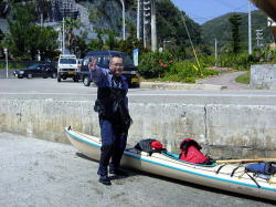 12:10港のスロープに上陸! 意外と楽に来れて満足の細川さん。 私も初横断に「感動した!」 |