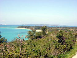 | 人参展望台(?)から、浜比嘉島を望む。 人参型の場違いな展望台でした(笑) |