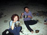 | 久しぶりの獲物をチェック! | はるさんが蛸を塩揉みしています。 | 「ゆんたく」が行われ、深夜へと続きました。 |