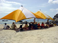 | 初めて、タ―プを2張にしました。 | 陽射しを遮り、中は快適。 | |