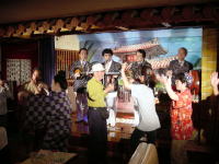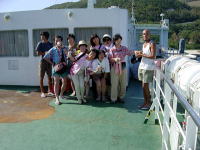 | 帰りのフェリーで。 | お約束のカチャ―シー | この平野さん3:30過ぎまで飲んで踊って、すごい元気な方です。 |