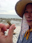 | 宮下さん、鳴きトカゲを生け捕り!これは食べれません。 | 海上で休憩。 嘉比の沖で。 |