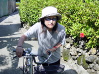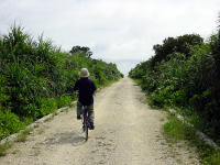 | 自転車から降りて、ビーチへ向かう | チリン、チリン♪ 快適な自転車ツーリング。 最後、ロマンスロードでスコールに遭う、ギリギリセーフで雨宿りができ、濡れずに済みました。 |
