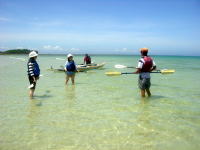 | 今回、フェリー組みとカヤック組に分かれての久高島ツアー。 島に出迎えがいてくれるというのは、とっても嬉しいものでした。ねぇ藤哲さん(笑)! 藤哲さんの事前リサーチのかいがあり、事が上手く運べました。 1日は海で遊び、2日は村内を自転車で散策、杉さんがちょっと体調を悪くしてしまったのが残念でした。 那覇に戻って「うりずん」で打上げ、沖縄民謡で大盛り上がり! 11月に慶良間に挑戦しましょう!!! K.SAKAI |