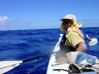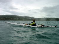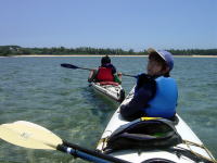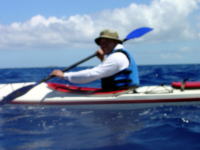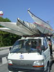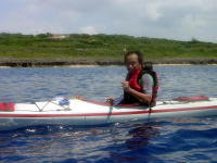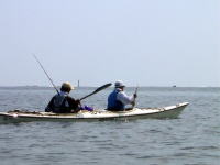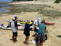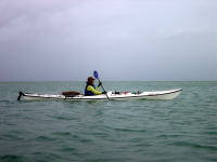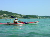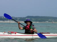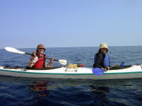 | 8人分のシーカヤックを積んで・・・ | 斎藤さん!漕いでる写真がなくてすまん! | だんだんシーカヤックにはまり つつある西岡さん。 |