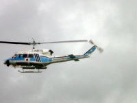 カヤックの上を海上保安庁のヘリが旋回 (後で分かった事だがボートが転覆し漁師さんが行方不明との事) |
