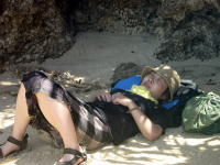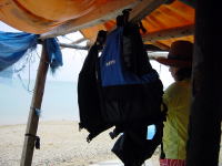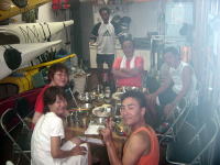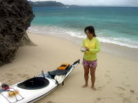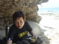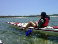 | 出発地点まで、車中で一眠りすると、そこは、海!!大渡海岸より出発。 天気もよく、日差しも強い。南西風が吹き、波もあまりなく、シーカヤックをするには良いお天気! 多分また、焼けちゃったんだろうな・・・。シーカヤック上で、脚をだして休憩、涼しくてたまらんね〜! 糸満港に着いて、「安らぎ亭」に入った。 どんな、店なんだろうと思って、店にはいると、まー本当に安らいでいるお店でした。 斎藤は、ふーチャンプル酒井さん&西岡さんは、みそ汁。 ふーチャンプルにはまった斎藤は、スーパーで、おふを沢山購入しちゃいました! う〜、メッチャホリデーっていう感じの一日でした。 斎藤知子 |