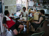 事務所に戻ってきて、釣れた魚で 宴会。いつものことです。 |