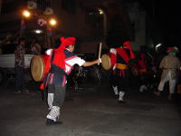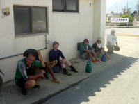 | ■8/23糸満日帰りツアー■ 沖縄は旧盆です。 「ウークイ」と呼ばれる、ご先祖様を送る日でした。 前日、西岡さんと斎藤さんと沖縄市までエイサーを見に出かけ、ミチジュネーにも参加。 ミチジュネーとは、エイサーを踊りながら、町内の初盆の方の 家々をねり歩くものです。運が良いことに3度もミチジュネーに参加。 これは、第六感と聞き込み調査でエイサーを探しだす。 だんだん、太鼓の音が近づき、目の前にエイサー隊が現れると なんともいえない嬉しさ、宝を見つけた気分です。 そんなで、終わったのが、夜の3:00!!!! こんな時間まで、おじいも子供たちも起きている。 特に、東と安慶田の勇猛なエイサーはまた見たいと思う。 k.sakai |