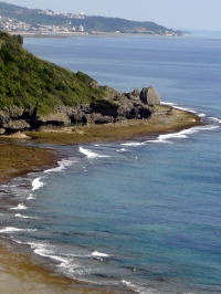 | 摩文仁の丘から撮影 | 摩文仁の丘から玉城を見る | リーフの波を今日は穏かです。 | |||||