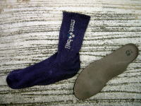 | 私良いものを作りました。 カヤックサーフィンを始めた祭に、マリンブーツだとなんだかフィット感が悪く、 裸足だと岸から海に行く際に針の山を歩かないと行けないので辛い。 そこで、開発したのが、「ス〜パ〜ソックスゥ〜」 説明しよ〜!これは、化繊の足裏が厚めの靴下に、いらないシューズの靴底を入れるわけです。 意外と快適でびっくり。針山を歩いてもOK!カヤックとのフィット感もすばらしい! 欠点は、終わって岸に上がってくる際に、海水を含んでいるから、ソックスと足の密着間が減ってしまう。 たぶん、他のサーファーからは「あいつウエットスーツにヘルメットに靴下!!!」 という視線を横目に 「バカめ!愚か者!こいつはただの靴下じゃなか!ス〜パ〜ソックスゥ〜ばい」 「ムフフ・・・・・・」 本土だと砂地だから意味ないか! Kazunari-Sakai |