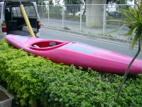 昨日は黒いカヤックで波乗り。 | 今日はこのぼろ艇、いや、 ポロ艇でやってみました。 |