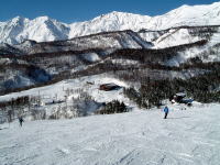 栂池高原スキー場の頂上付近から 北東側をバックに。 |