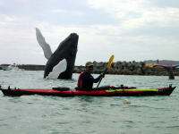 | 第二難関の慶良間海峡を乗り越え、 無事に座間味港へ入港! な!なんと!港に鯨が!!! |