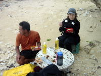 | コマカ島へ | ビーチに設置されてた テーブルで休憩。 |