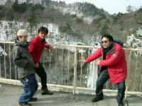 | あまりの迫力で足がすくんでしまう、 華厳の滝の展望台にて。 |