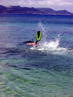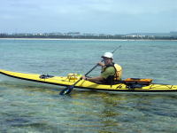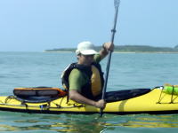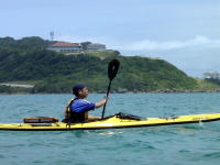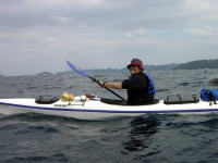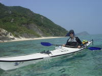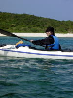 | ムカラク上陸直前! ほとんどラダーを使わず パドリングでカバーしてしまう! スキルが段々身に付いてる 岡野さん 肩にカヤックをぶつけてしまい 本当にごめんなさい。 |