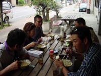 | 晴天で、知念半島のグリーン色と海のブルーが綺麗に見えました。 | 昼食! 今日はビールが上手い! |