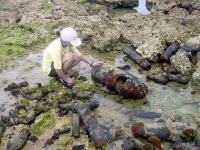 | 砲弾の残骸を目の前にし、 歴史の置きみやげを、 目せられつつ・・・ |