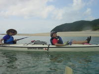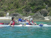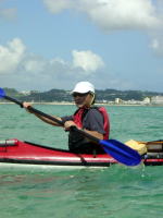| 奥武島をのんびり1周。 シングル艇に初めて乗る。 昼食後、いやいや沈してみる。 最初に沈する事によって リラックスできるんだな♪ |