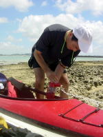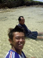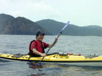 | セルフレスキューを練習しました。 これまたボディバランスが なかなかのもので、 この日が初めてのシーカヤック にもかかわらず、 朝飯前にこなしてしまいビックリ! 何気に昭和1?年生まれの 自称35歳日本男児? |