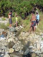 小川の流れを堰止め 水浴び開始! 海から上がった後の真水の 素晴らしさ、ありがたや〜。 |