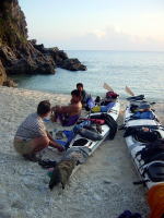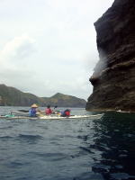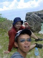 | 儀志布から西へ。 男岩の真下で休憩。 この日は大潮で このあたりは流れが速かった。 |