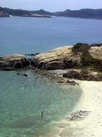 阿波連ビーチの沖合いにある ハナレから南側を見渡す。 太陽の光が海底まで届き、 そりゃあ綺麗の何のって! さすがに盆休みもあって 多くの人で賑わっていました。 |
