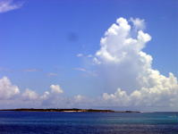 | べた凪の中、コマカ島へと | 洋上休憩 | コマカ島の丘の上で、 久高島の方を見つつゆんたく。 |