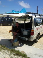 渡嘉志久ビーチに戻ってきました。 ちょいと一服した後、 思い残すことなく 徹底的にシュノーケリング。 |
