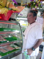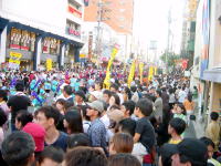 OPAの前、 人、人、人、人、人の波。 ビギンの「おじー自慢のオリオンビール」の創作エイサーが始まり、 「三ツ星かかげて、高々と・・・」 ついつい口ずさむ。 この後、大東そばを食べ に行き、そこの大東寿司は美味かった。サワラのしょうゆと酒と砂糖で 漬け込んだものと一緒に握る。 |