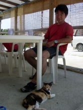 阿嘉港の橋の近くで小休止。 |