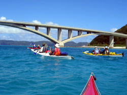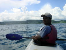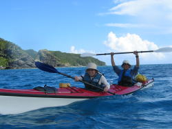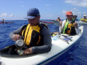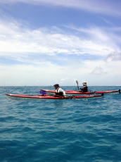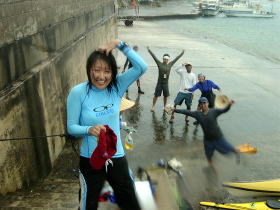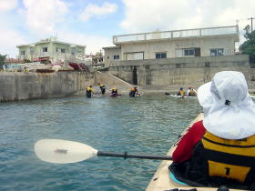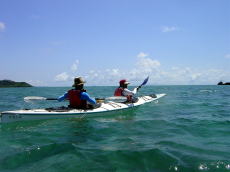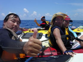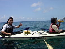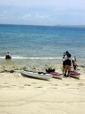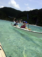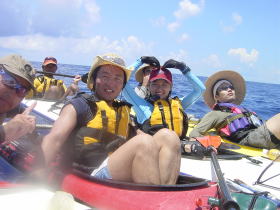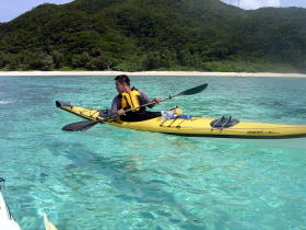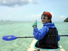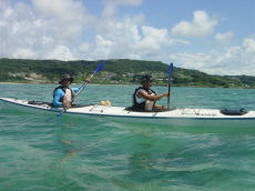 | 念願のシーカヤックにチャレンジすることができた与儀さん! 次回はシングル艇に!少しづつステップアップしていきましょう! 次はどこへ案内しましょうか? |
