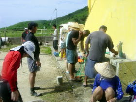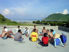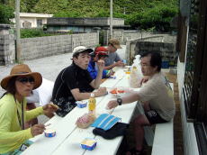 | 集落を散策 | 東側の海をバックに。 | 港の公園の木陰でゆんたく | ||||||||||||||||||||||||||||||||||||