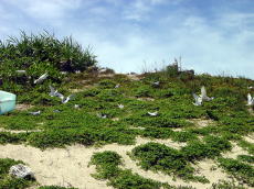 島には沢山のアジサシ(鳥)がいました ちょうど産卵シーズンなので ピリピリしていた模様。 |