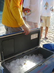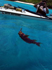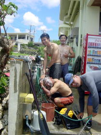 安室島を出て渡嘉敷の阿波連近くに 到着。買出し前に海に浸かって 身体を冷やす。 |