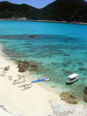 | やはり連休であって、 シブガキ隊島(ハナレ)も阿波連ビーチも パラソルがならびお花畑状態。 うわ〜めっちゃ多いな〜!と言ってたら、 「湘南に比べたら少ない少ない!」だって♪ |