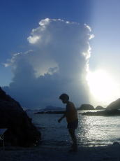 | 題して「夏休み」と付けたい程の写真。 夏の積乱雲が西の空にモクモクと立ち上がり、日差しを遮ってくれて助かった! 日が隠れるとビックリするほど快適です。 |