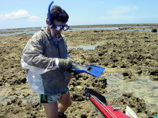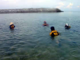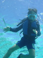 糸満沖合いのリーフに上陸して シュノーケリング開始! 意外と海が 綺麗なんですよ! |