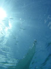 | 海底からカヤックを撮ってみました。 魚がもっといたような気がしたけど、 あんまり写っていない。 |