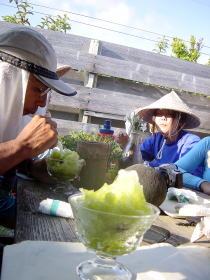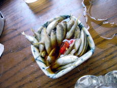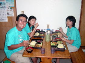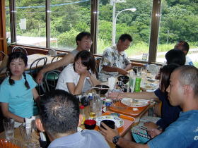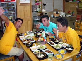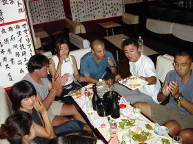 皆がむさぼり食った”スク”です。 よく豆腐の上にのってる小さな魚です。 一足早く高速船で帰ってしまった 野村さ〜ん! と〜っても美味しかったよ(笑) |