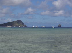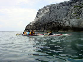 岡波岩に上陸して、ちょいと遅めの昼食 をとる。ここには戦争中の爆弾が あることで有名だが、処理されて ほとんどなくなっていました。 |