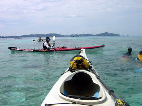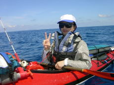 カヤック2回目の鈴木さん。 危ないような♪シーカヤックの世界に片足を突っ込んでしまった。 |